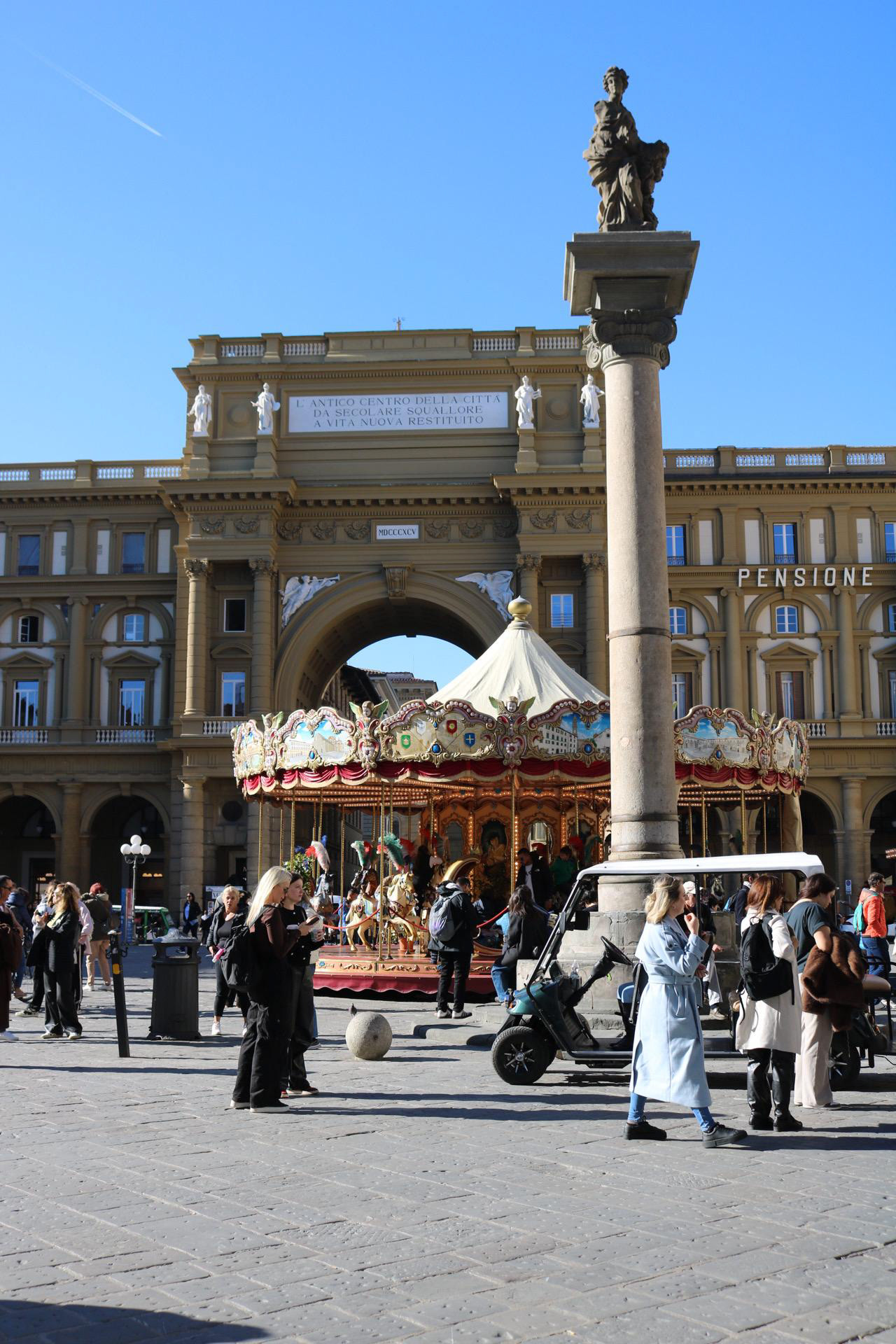 Piazza della Repubblica: ancient Roman forum Column of Abundance and historic antique carousel
