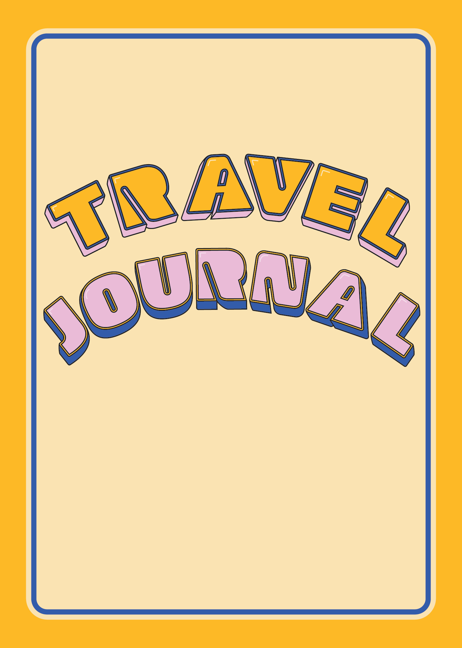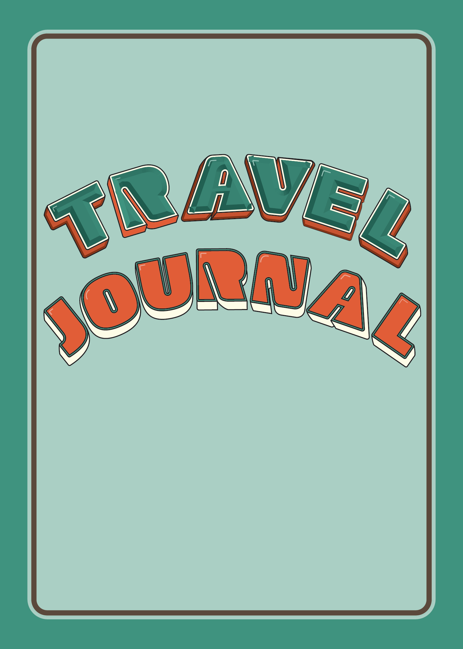 Create a travel journal design layout and cover illustration combining graphic design and layout design with passions for traveling and journaling to provide a tangible outlet for storytelling while offering a personal and reflective alternative to mainstream social media influence.