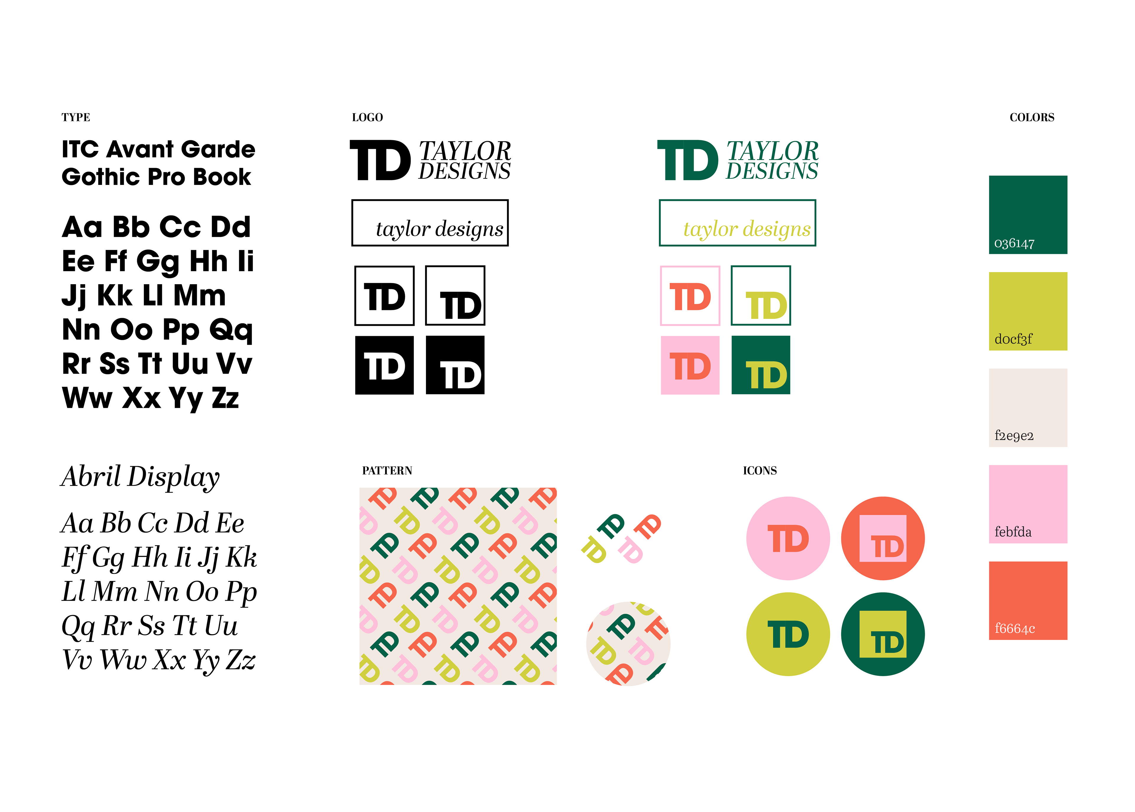 This week I am Logo and brand design concept designs. Below is my finalized logo concept and brand elements of Taylor Designs.